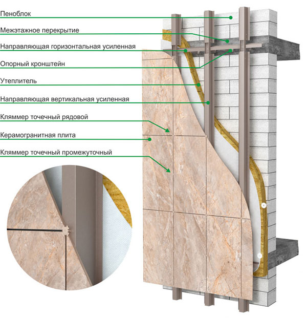РОНСОН-300 – система навесного вентилируемого фасада, предназначенная для крепления керамогранитных плит (видимое крепление).