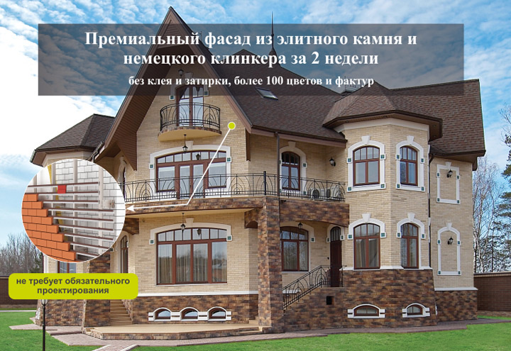 Фасад из натурального клинкера и декоративного камня, но уже без клея и затирки!